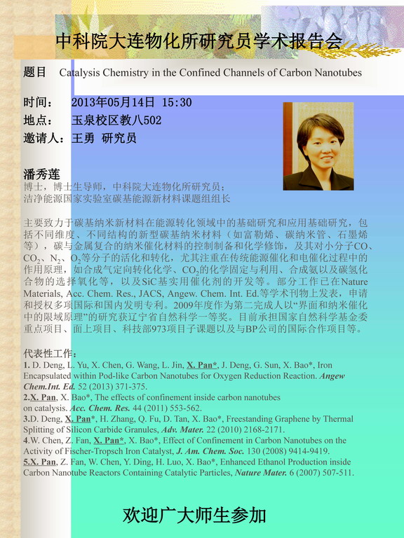潘秀莲(大连化物所)报告会