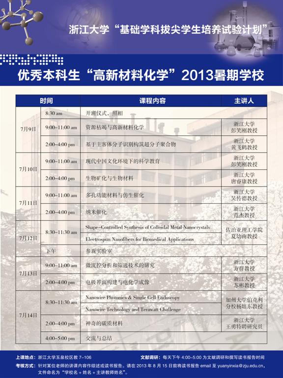 “高新材料化学”2013暑期学校