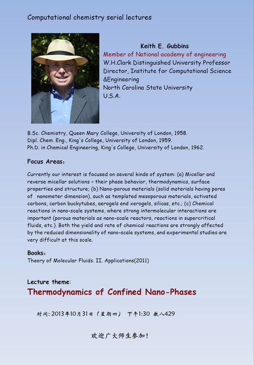 Keith E.Gubbins(美国南卡罗林娜州立大学)报告会