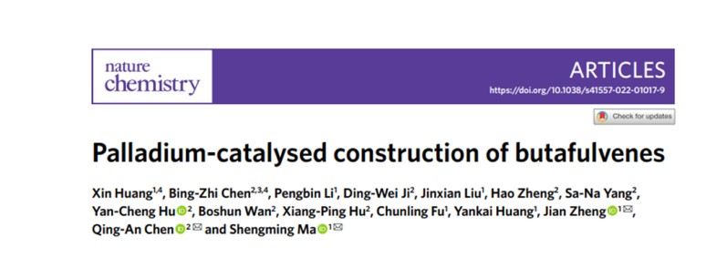 近日,我系麻生明院士、郑剑研究员团队在《Nature Chemistry》上发表了题为“Palladium-catalysed construction of butafulvenes”的研究论文。