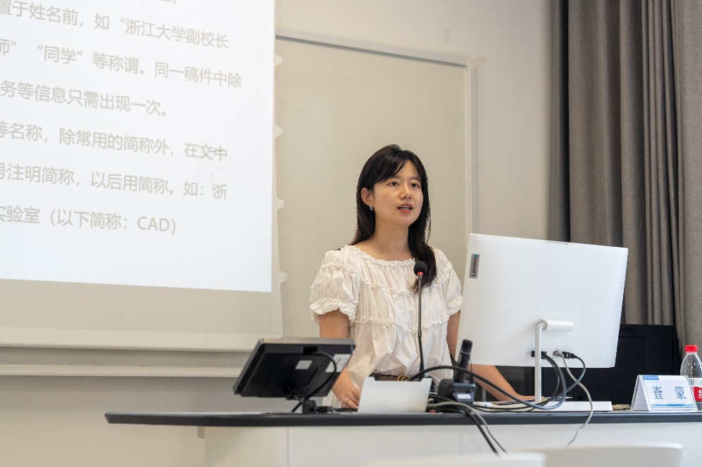 查蒙围绕校园新闻工作应遵循的原则、新闻稿的结构、注意事项以及新闻摄影要求展开讲解。她指出,新闻稿需严格遵循准确性、时效性和规范性的原则,并具体阐述了新闻工作者在采写过程中的关键环节与注意事项。在实例分析中,查蒙详细讲解了新闻标题的拟定、首段的撰写技巧以及正文内容的组织方法。