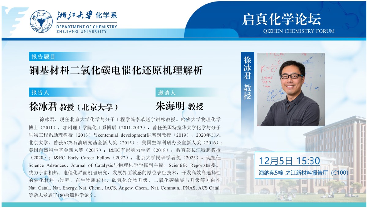 信息推荐 最新通知 公告(浙大主页) 浙大新闻 日历活动 学术 文体 会议 标杆院系 样板支部 公示公告(综合服务网) banner图 研工部官网信息推荐 文化校园 当前位置: 首页 > 学术 【化学系】启真化学论坛:徐冰君 教授(北京大学) 来源:浙江大学化学系 发布时间:2025-11-25 10