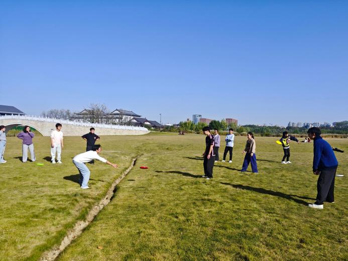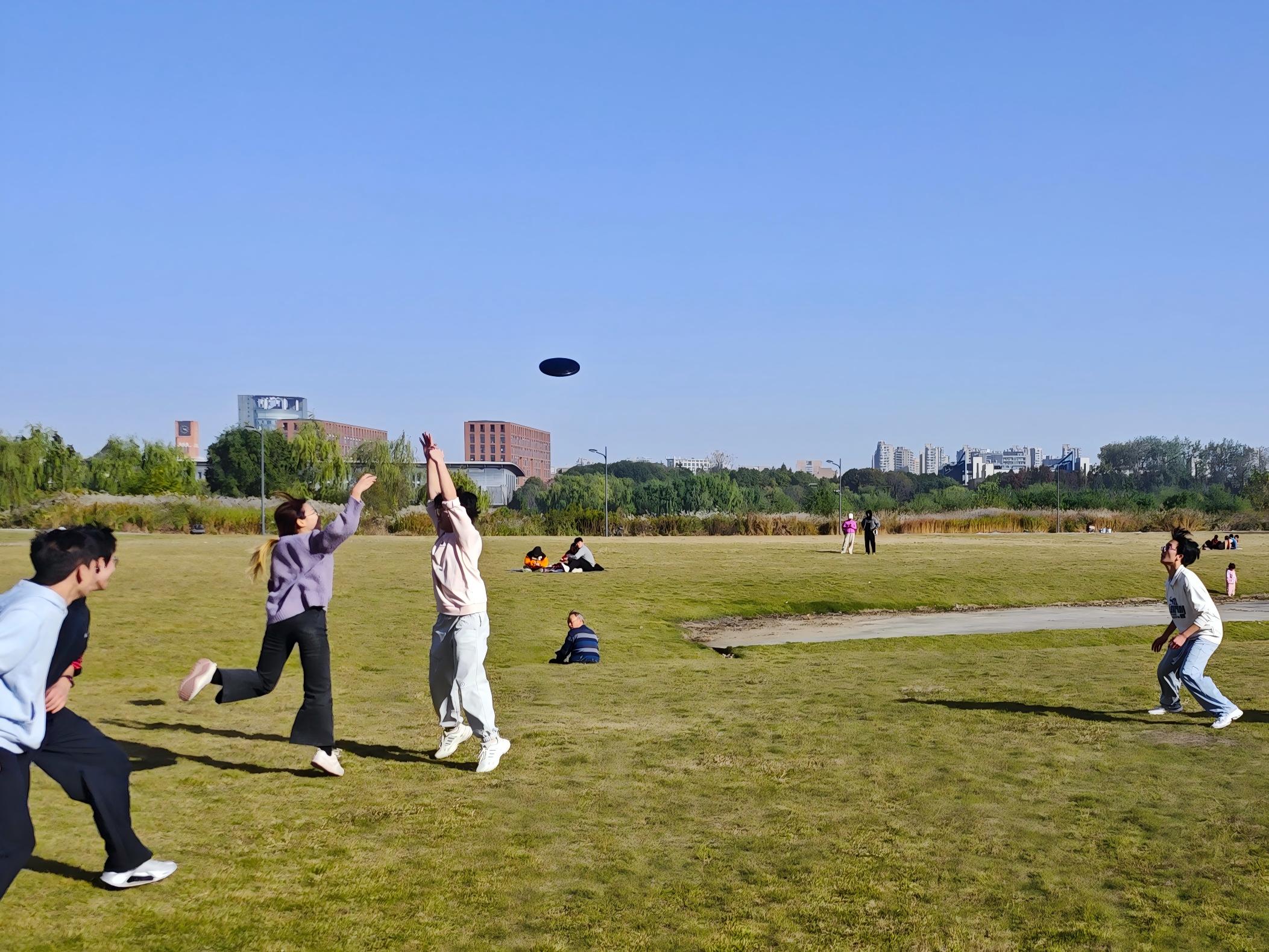 活动伊始,同学们在轻松愉快的破冰交流中迅速熟悉起来,随后两两组队,通过基础的投掷与接盘练习,逐步感受飞盘运动的独特魅力。
