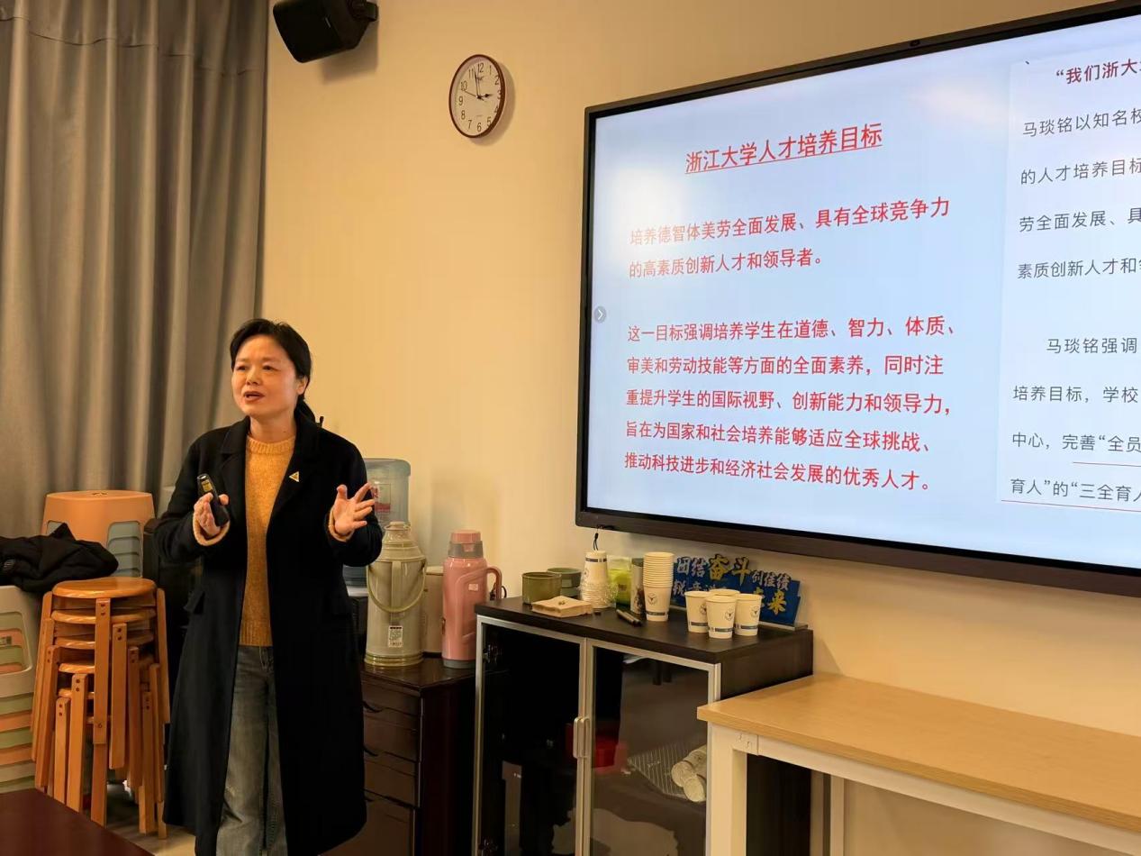 赵华绒教授围绕“有效设计有序实施”主题,结合浙江大学人才培养目标阐述课程设计要点。她指出,课程体系应遵循阶梯式、螺旋式进阶规律,聚焦知识本质;教师需善于设计问题链引导学生主动思考,同时关注学生身心健康,做好学生成长路上的引路人。
