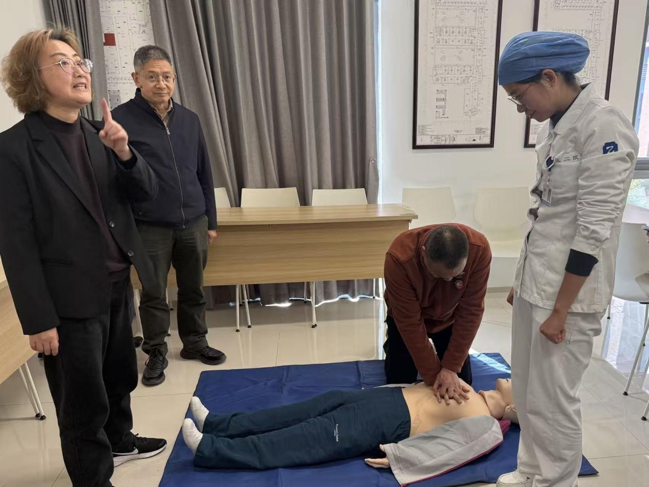 12月19日,化学系工会组织开展教职工医疗急救专题培训,校医院副院长徐俊、校医院紫金港分院执行院长唐云、干部保健科杨小娜主任、内科潘爱武主任以及玉泉校区徐颉颖护士受邀参加本次活动,他们用医护车运来两个仿真模型以及AED仪器,以提升教职工应急救护培训效果。