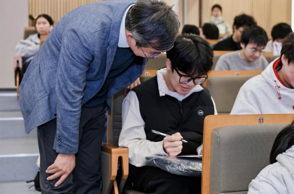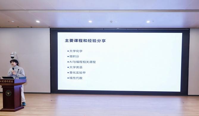 为发挥优秀学生的榜样引领作用,在优秀学生分享环节,邀请2025年国家奖学金获得者、2302班郑卓航和求化2201班龚懿德两位同学,分别结合自身学习与科研经历,重点围绕大一课程学习和科研训练两方面分享心得。他们鼓励新生勇于尝试、不怕挫折,在踏实积累中实现自我突破。