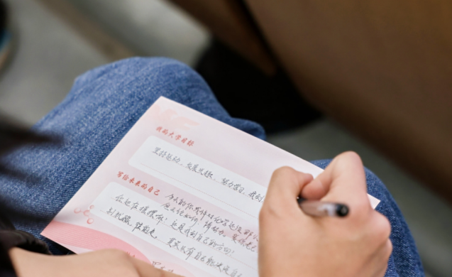 仪式最后迎来温馨的“新语心愿”环节。新生们在明信片上写下对大学四年的期待与规划,投入心愿箱,期待梦想在化学系的土壤中生根发芽。