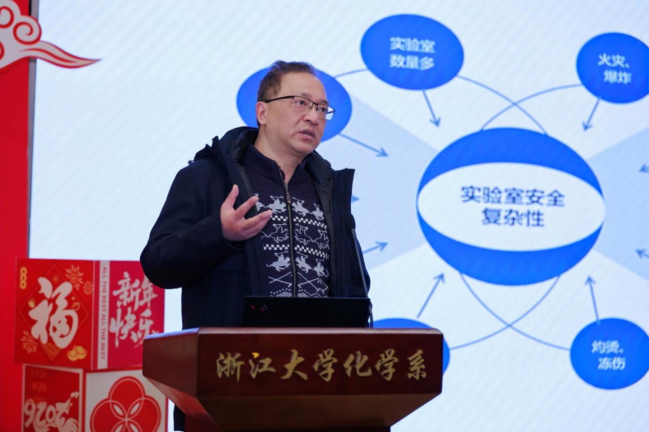 实验室与设备管理处副处长胡凯作实验室安全专题报告。他结合实验室事故警示案例,分析了事故发生的成因与规律,并从基础安全和化学安全两个层面,重点介绍了实验室风险评估和全周期“数智管控”的相关做法,强调安全责任落实和规范操作的重要性。