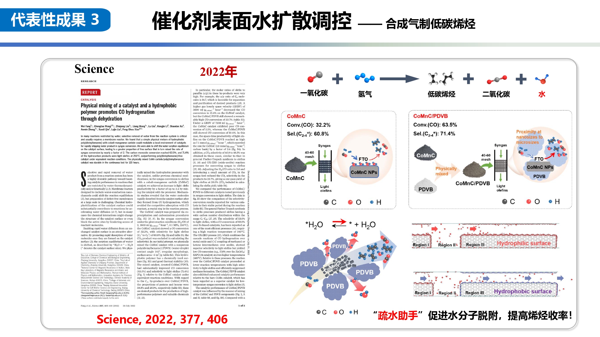 肖丰收,浙江大学求是特聘教授,博士生导师。于1983年在吉林大学获得学士学位,1990年获得博士学位 (吉林大学、大连化物所以及日本北海道大学联合培养),后在美国加州大学Davis分校从事博士后研究,1996年任吉林大学教授,1998年获得国家基金委杰青项目资助,2009年入职浙江大学。目前担任亚洲太平洋催化理事会(APACS)主席、中国催化学会委员、国际沸石协会(IZA)副主席、中国分子筛学会委员、Industrial & Engineering Chemistry Research副主编、Chemcatchem,J. Energy Chem.和Catalysis Surveys from Asia 编委等职。1996年入选教育部优秀青年教师;1997年获得跨世纪优秀人才资助;1998年获得国家杰出青年资助;2001年入选吉林省管专家;2008年获得Thomson科学研究前沿奖;2009年获得教育部自然科学二等奖;2019年获得浙江省发明一等奖;2021年获得第三届中国分子筛成就奖;2022年入选中国化学会会士;2024年获浙江省自然科学一等奖;2025年获第三届"亚太催化成就奖"(Advance of Catalysis Award)及国际分子筛协会最高荣誉奖(Donald W. Breck学术奖)。其主要研究方向为沸石分子筛的绿色合成、针对能源和环保的沸石催化剂开发,在Science, Nat. Catal., Nat. Nanotech., Chem, J. Am. Chem. Soc., Angew. Chem. Int. Ed.等国际刊物上作为通讯作者发表多篇论文500余篇,他引25000余次,当前H因子82,获得授权专利130余项,在国内外会议上做Plenary和Keynote报告50余次。Prof. Feng-Shou Xiao received his B.S. and M.S. degrees in the Department of Chemistry, Jilin University, China. From there he moved to Dalian Institute of Chemical Physics, China for Ph. D. research, then to the Catalysis Research Center, Hokkaido University, Japan, where he was involved in collaborative research between Dalian Institute of Chemical Physics & Jilin University, China with Hokkaido University, Japan. He was a Ph.D. student in Dalian for one year and in Sapporo for two years. In 1990, he was awarded his Ph.D. degree at Jilin University. After postdoctoral work at the University of California at Davis, USA, he joined the faculty at Jilin University in 1994, where he became a full professor in 1996 and distinguished professor in 2003. Since the end of 2009, Dr. Xiao as a distinguished professor has moved to Department of Chemistry, Zhejiang University. Currently, he is an associate editor of Industrial & Engineering Chemistry Research, also serving as secretary of the Asia-Pacific Association of Catalysis Societies. His research is mainly focused on zeolites, porous materials, and catalysis. He has more than 500 peer-reviewed papers with over 25 000 citations, H-index of 82, 130 granted patents, and over 50 plenary and keynote lectures at international conferences.代表性论文/Selected papers1. L. J. Liu, Lu, J. Y. Lu, Y. H. Yang, W. Ruettinger, X. H. Gao, M. Wang, H. Lou, Z. D. Wang, Y. L. Liu, X. Tao, L. N. Li, H. J. Li, H. Zhou, C. T. Wang, Q. S. Luo, H. X. Wu, K. D. Zhang, J. B. Ma*, X. M. Cao*, L. Wang*, F-S. Xiao*, Dealuminated Beta zeolite reverses Ostwald ripening for durable copper nanoparticle catalysts, Science, 2024, 383, 94-101.2. W. Fang, C. T. Wang, Z. Q. Liu, L. Wang*, L. Liu, A. M. Zheng*, X. D. Qin, L. J. Liu, F.-S. Xiao*, Physical mixing of a catalyst and a hydrophobic polymer promotes CO hydrogenation through dehydration, Science, 2022, 377, 406-410.3. H. Zhou, X. F. Yi, Y. Hui, L. Wang*, W. Chen, Y. C. Qin, M. Wang, J. B. Ma, X. F. Chu, Y. Q. Wang, H. Hong, Z. F. Chen, X. J. Meng*, H. Wang, Q. Y. Zhu, L. J. Song, A. M. Zheng, F.-S. Xiao*, Isolated boron in zeolite for oxidative dehydration of propane, Science, 2021, 372, 76-80.4. Z. Jin, L. Wang*, E. Zuidema, K, Mondal, M. Zhang, J. Zhang, C. T. Wang, X. J. Meng, Q. H. Yang, C. Mesters, F.-S. Xiao*, hydrophobic zeolite modification for in-situ peroxide formation in methane oxidation to methanol, Science, 2020, 367, 193-197.5. J. Zhang, L. Wang*, B. S. Zhang, H. S. Zhang, U. Kolb, Y. H. Zhu, L. M. Liu, Y. Han, G. X. Wang, C. T. Wang, D. S. Su, B, C, Gates, F-S. Xiao*, Sinter-resistant metal nanopartricle catalysts achieved by immobilization within zeolite crystals via seed-directed growth, Nature Catalysis, 2018, 1, 540-546.
